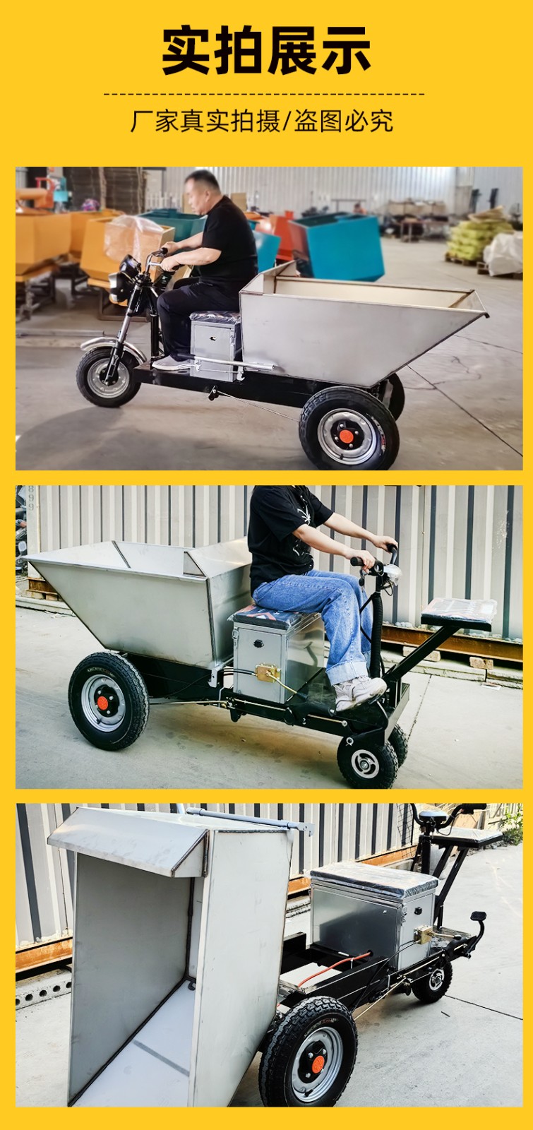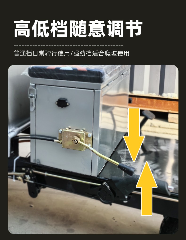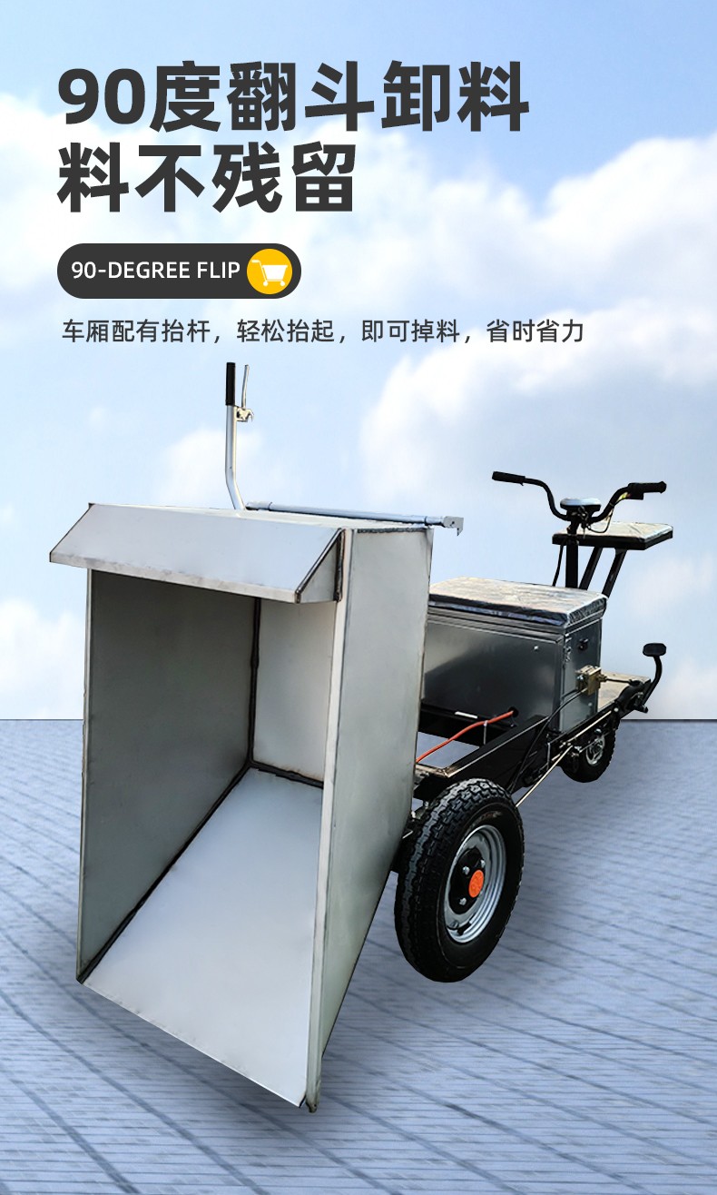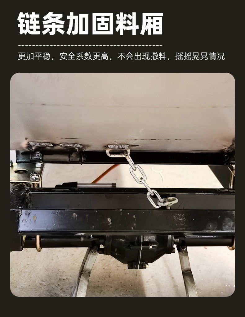 链条固定车斗,不晃斗,轻松翻斗卸料。