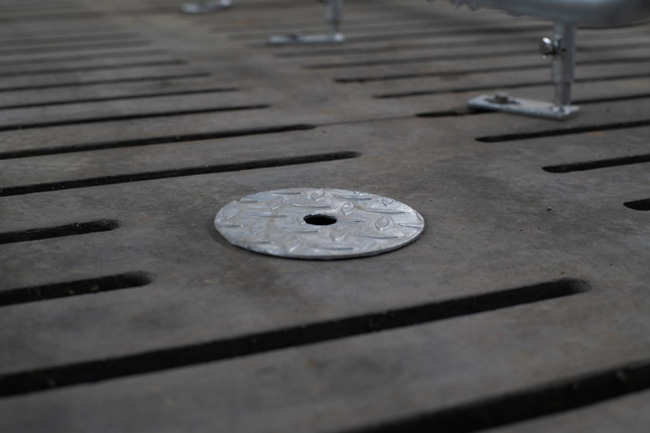 采用金属漏粪板模具,内加钢筋网浇灌水泥而成,原材料选型严格,经过多重测试,确保板材质量;