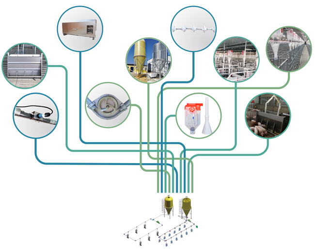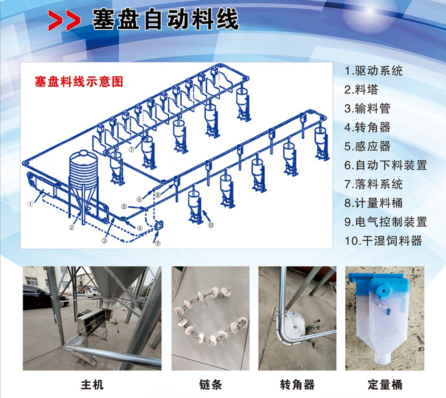 适用于室外料塔间的转运输送和从料塔直接到猪只饲喂料槽处的饲料输送;